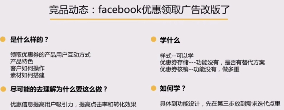 竞品调研也有 3 个主要关注的要素:目的,手段,结果