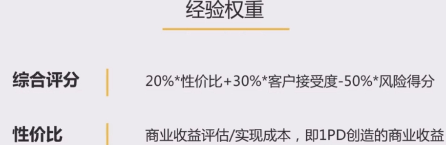 需求筛选需要通常会从以下四个方面去评估,并提供了参考的综合评分