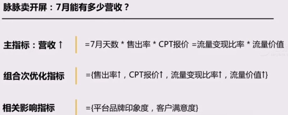另外,比较值得关注的商业产品常常可通从 2 个维度入手,即从流量角度看,收入 = 曝光量 ×cpm;而从客户角度看,收入 = 客户数量 ×arpu