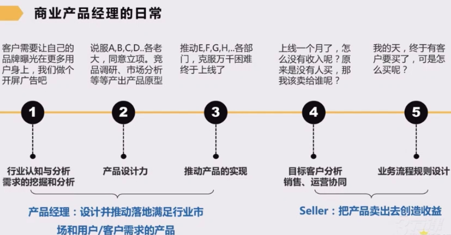 第二个角色的职责是把产品卖出去创造收益,这部分更多跟销售环节挂钩,更详细可划分为 (1) 目标客户分析,销售、运营协同(2)业务流程规则设计
