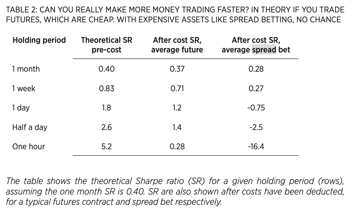 But the flaws of this law is also obvious, it assumes that the ‘skill’ of the trader is constant across holding periods (but the skills required to day trade are very different from those a long-term investor needs). It also ignores transaction costs;these can seriously damage the returns of fast traders