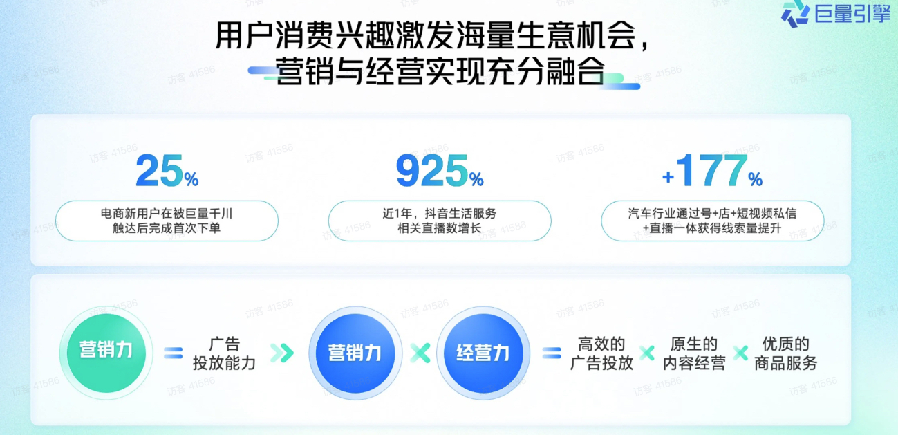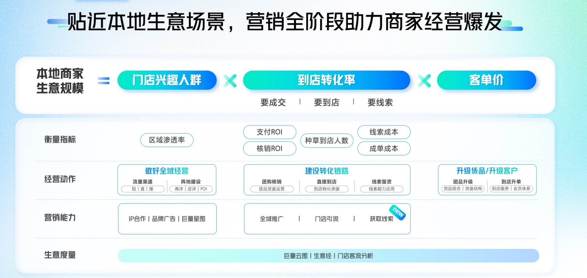 巨量把这个定义成营销力(见下图),即客户除了仅砸钱投广告,还需要有制作好素材能力(获取更多自然流量)以及提供优质服务的能力(口碑有保证,留住用户),对客户和平台来说,才是一种更可持续发展的方向;而这也是笔者这里讲的 “经营” 所表达的意思是一样的,经营在笔者的理解就是通过好内容或钱来获取流量(前者是自然流量,后者是广告流量),然后基于这些流量触达到的客户,来进一步拓展用户群