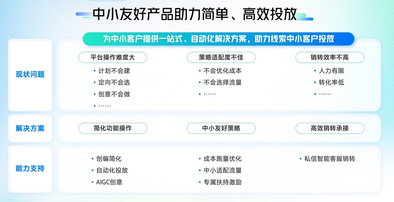 客户作为平台的金主,是平台需要重点服务的客户,无论是分行业 / 场景的优化,还是针对 SMB 客户有更多低门槛的投放,都是在尝试把每个广告主服务好,让广告主能更好的做好自己生意,在平台上做长期的经营