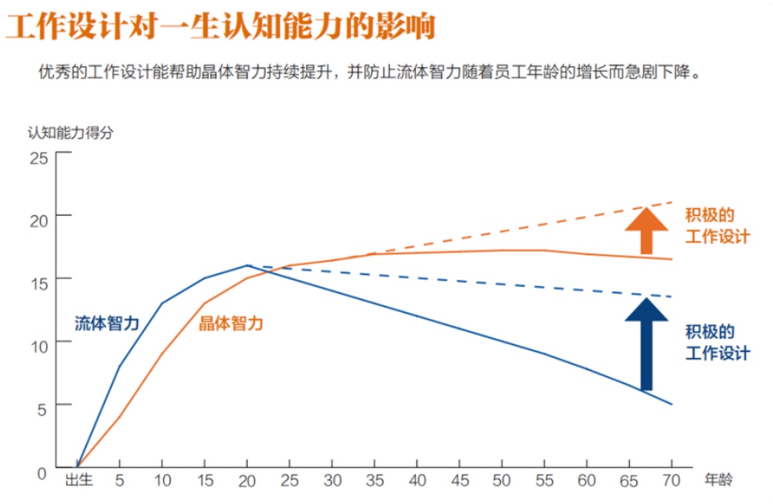 如果你的事业完全依赖于流体智力,那确实容易更早地到达事业巅峰,然后进入下行通道;但如果你的工作是更依赖于晶体智力,事业巅峰就会晚一些,上破路也会久一些。说的更直白点,就是偏理工科的岗位更依赖流体智力,偏文科的岗位依赖大量知识储备以及应用能力的岗位更依赖晶体智力,所以如果能从偏流体智力的行业切换到偏晶体智力的行业,就是一次比较成功的跳船,或者说职场转型;比如说原来你是偏向创新和实践的,那之后就可以往指导和培训去转型