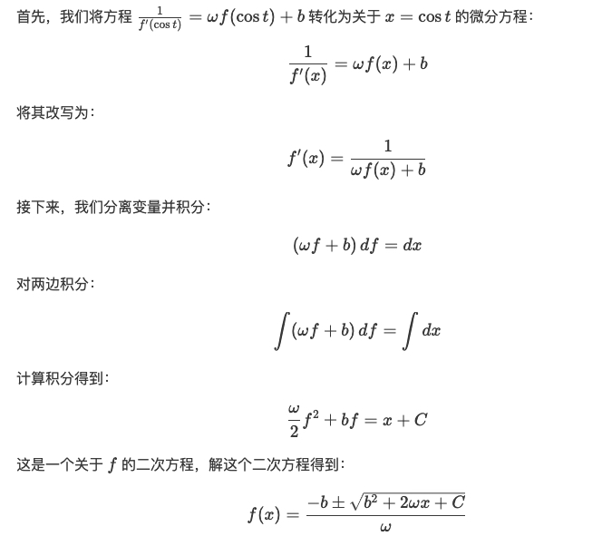 \[\frac{1}{f'(cost)} = \omega * f(cost) + b\]
